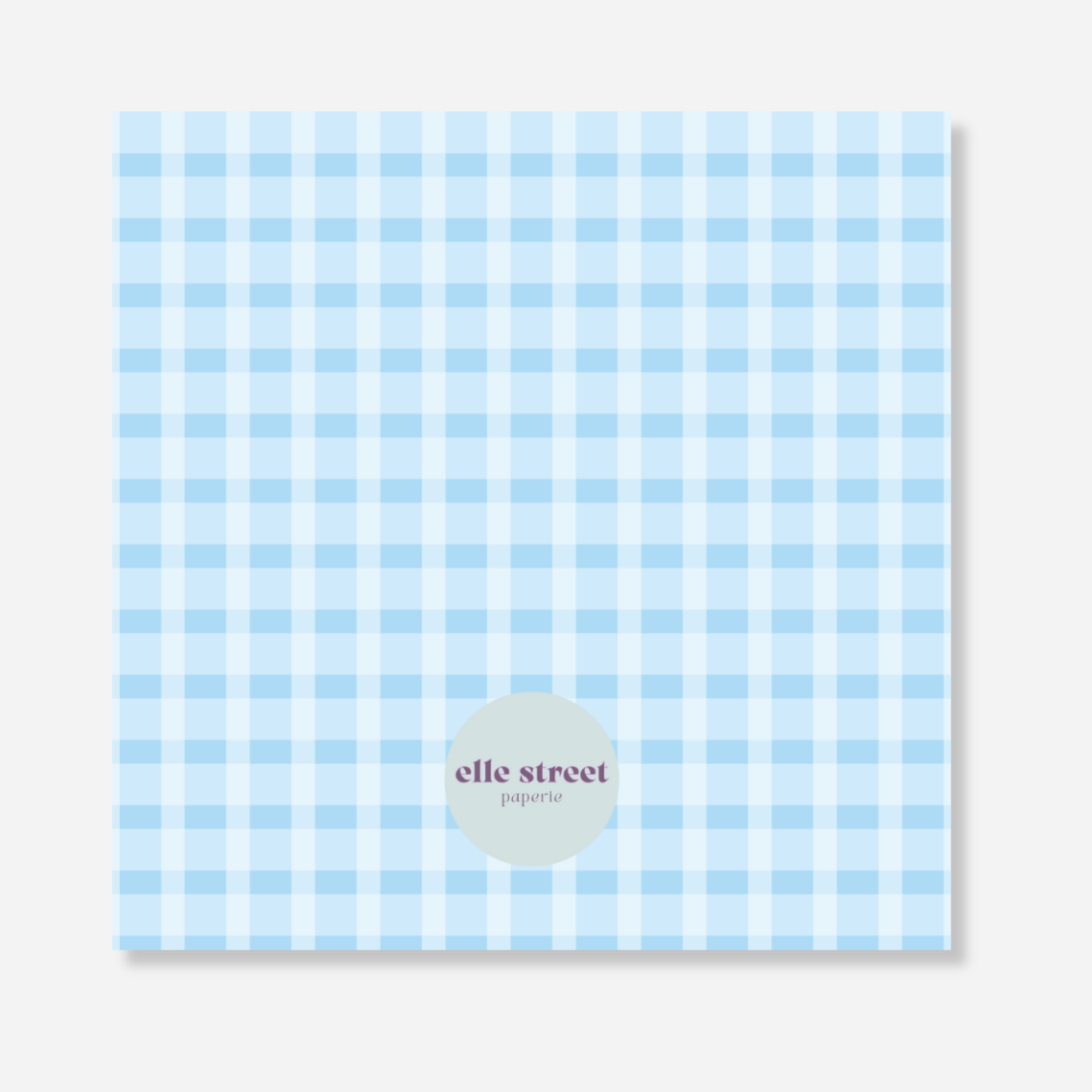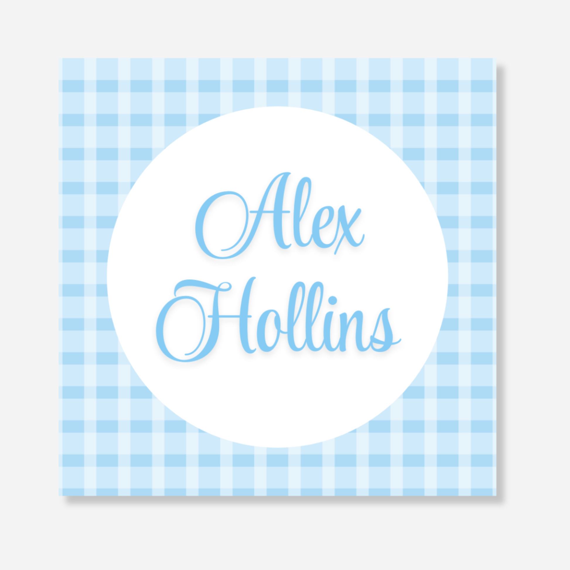 3"x3" Blue Gingham Laminated Bag Tag with Loop Lanyard