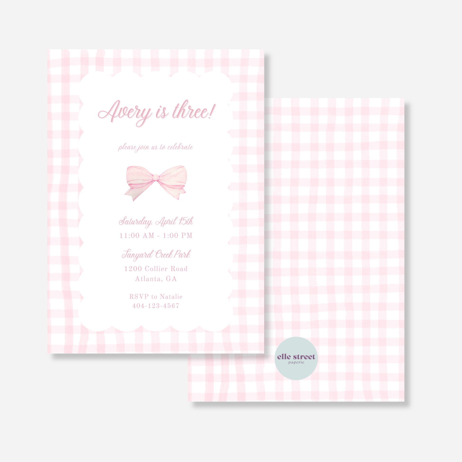 Pink Gingham Birthday Invitation